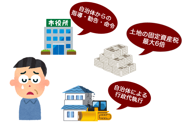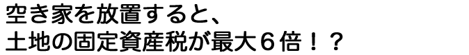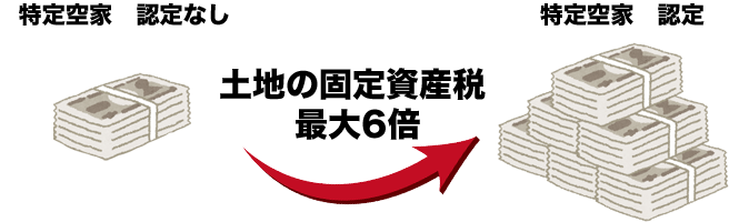 特定空家に認定された場合、その土地にかかる固定資産税が軽減措置(住宅用特例)の対象外となり、建物があるにも関わらず、更地同然の固定資産税(軽減措置対象の最大6倍)が課税されます。