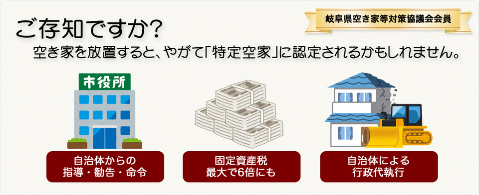 行政指導の対象となる「特定空き家」に認定・・・となってしまう前に、一度ご相談ください。